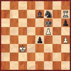 Het aardige is dat deze stelling gelijk is maar met een kleine wijziging wint wit al. Zet bv de pion op b7 maar eens op b6. Zwart was echter in staat om zijn stukken te co-ordineren en wit kan zijn winst dromen al snel gedag zeggen. Terwijl ik eigenlijk remise had moeten gaan probeerde ik te winnen. Dit leidde tot een hopeloze stelling met zwart aan zet.